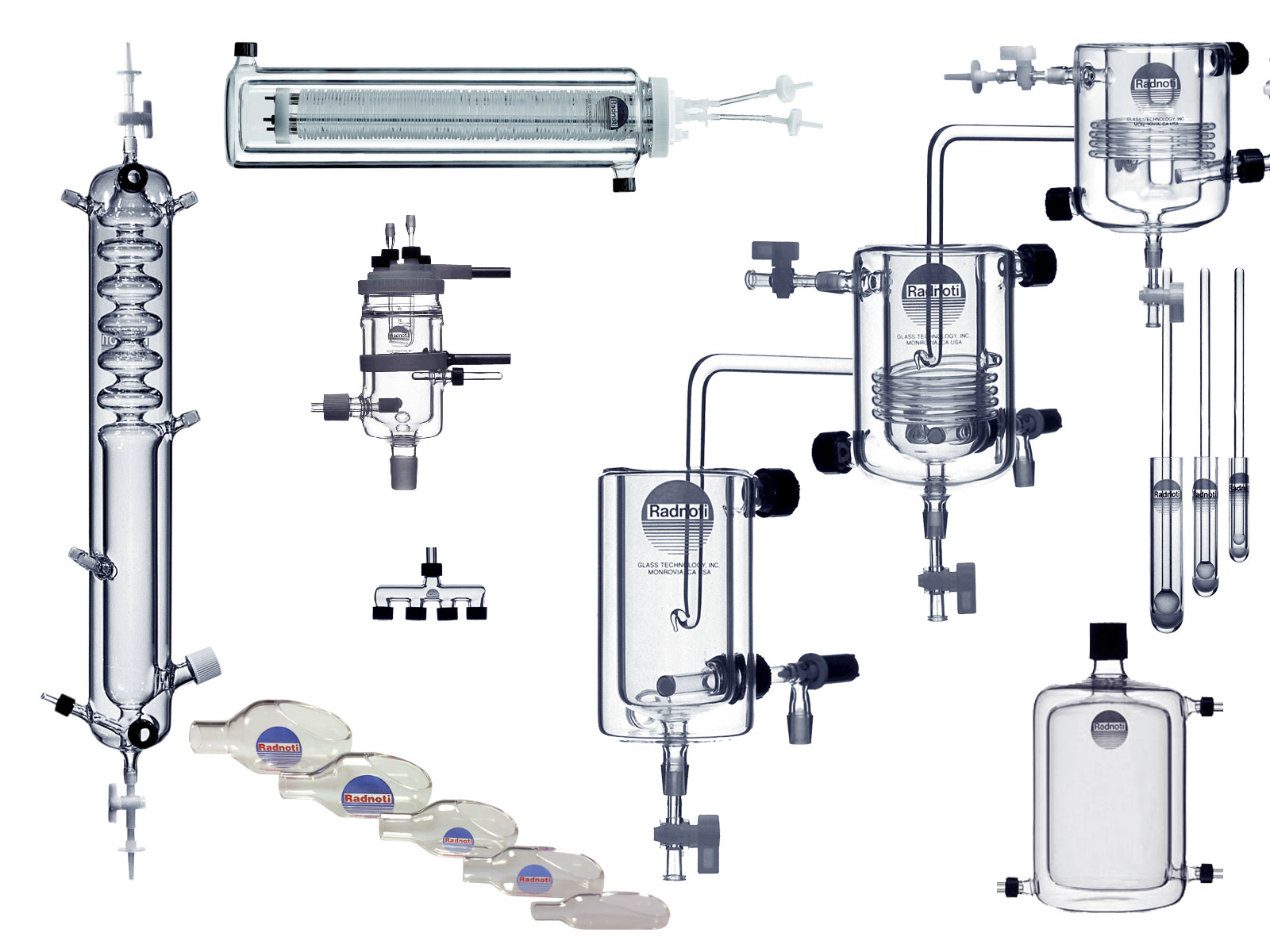The complete line of Radnoti glassware components for all of our systems and stand alone glass products. All of our glassware is made by us of the finest borasilicate glass.